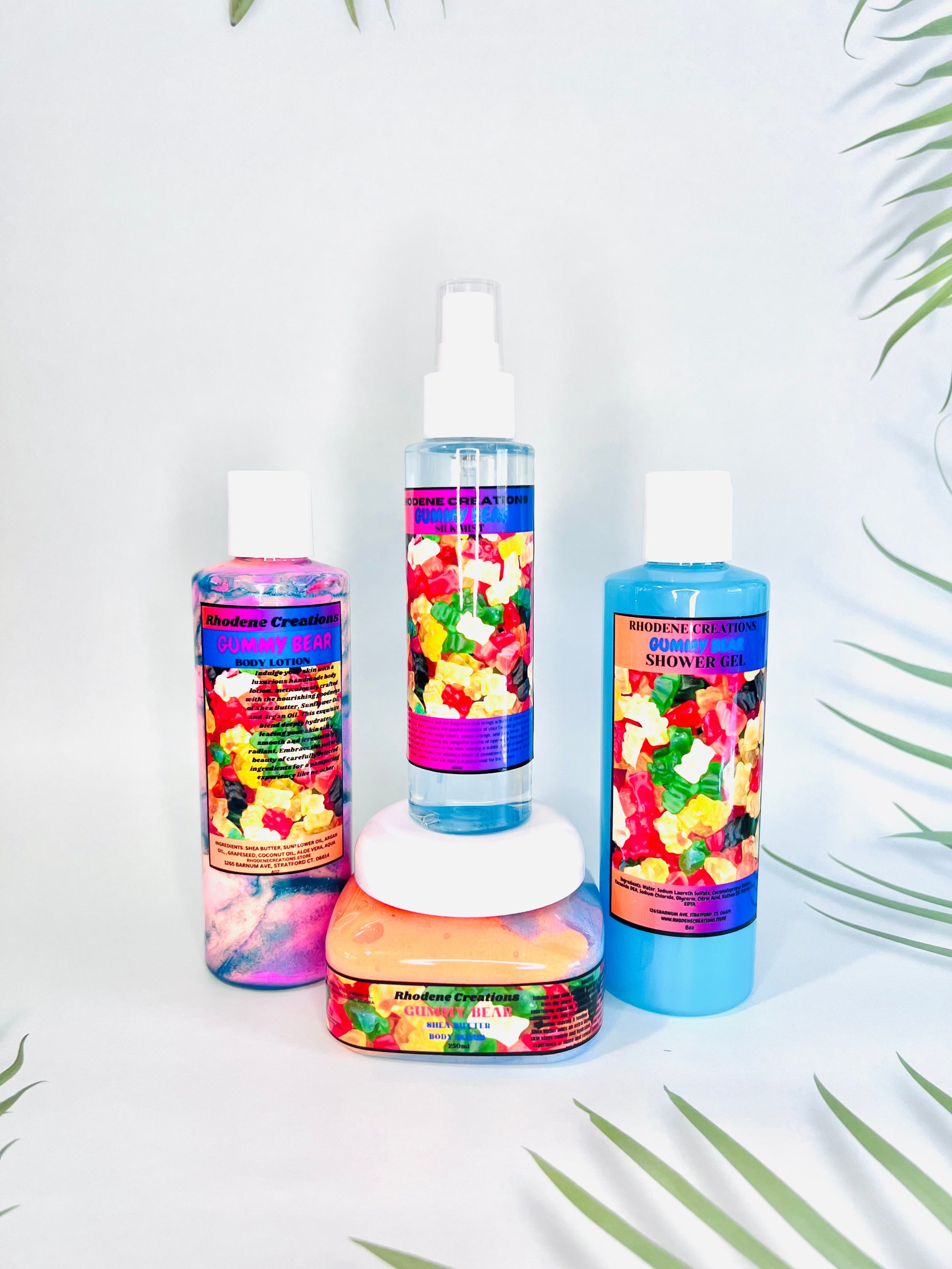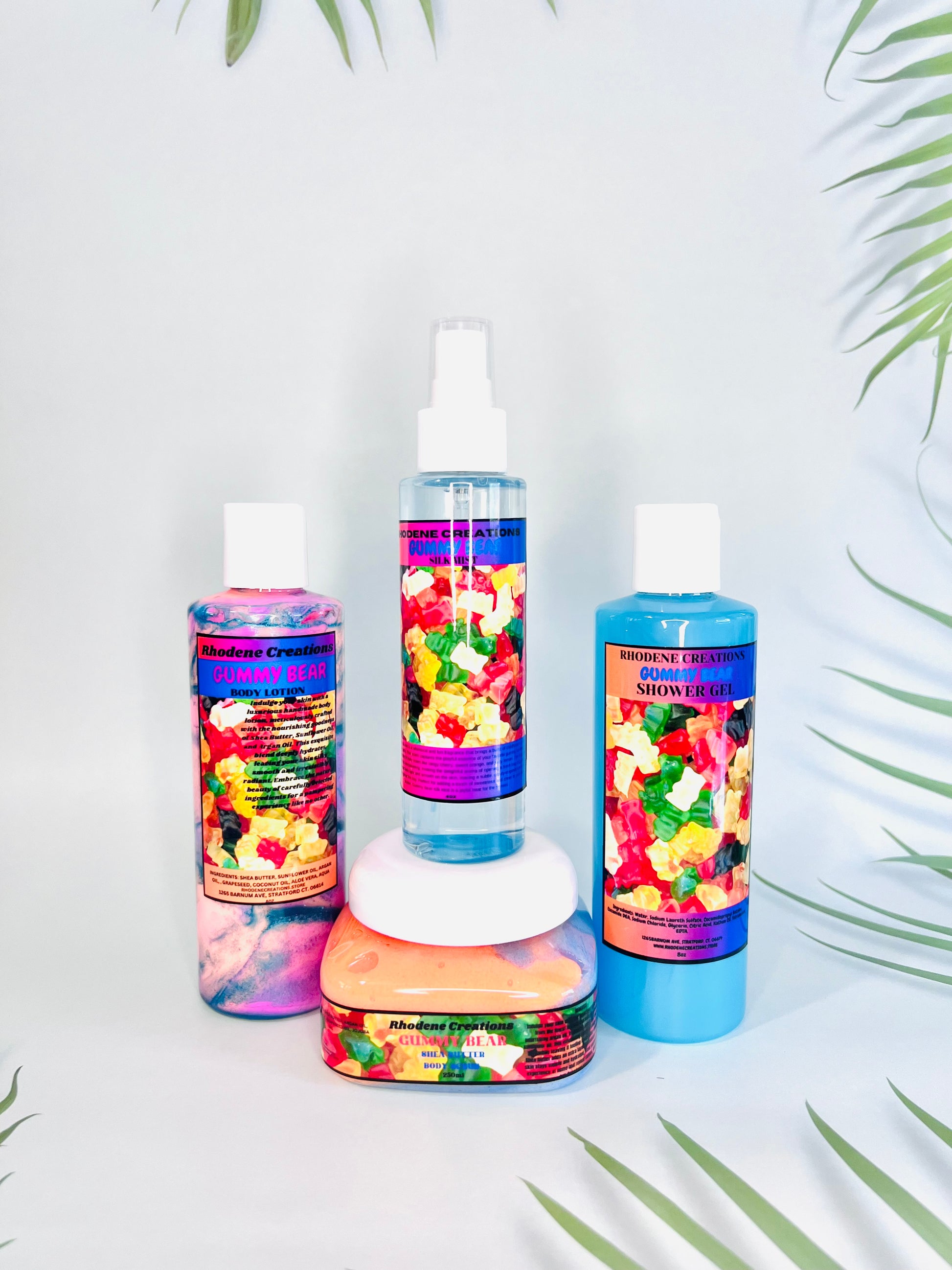 Indulge in a spa-like experience with our Gummy Bear bundle. This set includes luxurious body lotion, exfoliating body scrub, hydrating body mist, and refreshing shower gel. Each product is designed to nourish and revitalize your skin, leaving you feeling pampered and renewed. Treat yourself to the ultimate self-care routine with our Gummy Bear bundle.